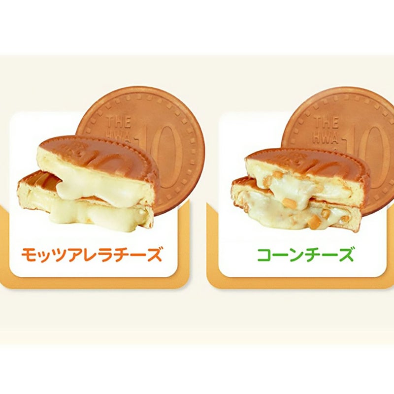 10ウォンの形をしている美味しい焼きパン。チンするだけで熱々美味しい 10ウォンパンとは、韓国の10ウォン硬貨(約1円)を模したパンで、中にモッツァレラチーズが入ったスイーツです。