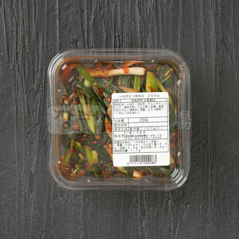 [原材料名] 小ねぎ、砂糖、醤油、みりん、唐辛子粉、ごま、りんご、玉ねぎ、にんにく、りんご酢、調味料(アミノ酸等)、ごま油