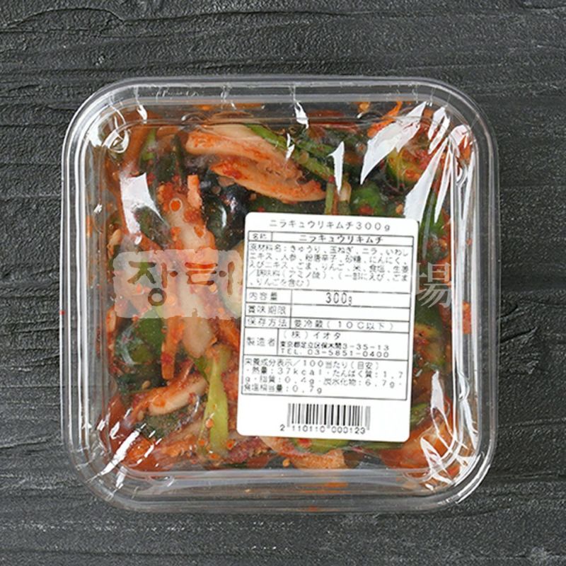 [原材料名] きゅうり、玉ねぎ、ニラ、玉ねぎ、いわしエキス、人参、砂糖、にんにく、粉唐辛子、えびエキス、ごま、米、食塩、りんご、生姜/調味料(アミノ酸)、(一部にえび、ごま、りんごを含む)