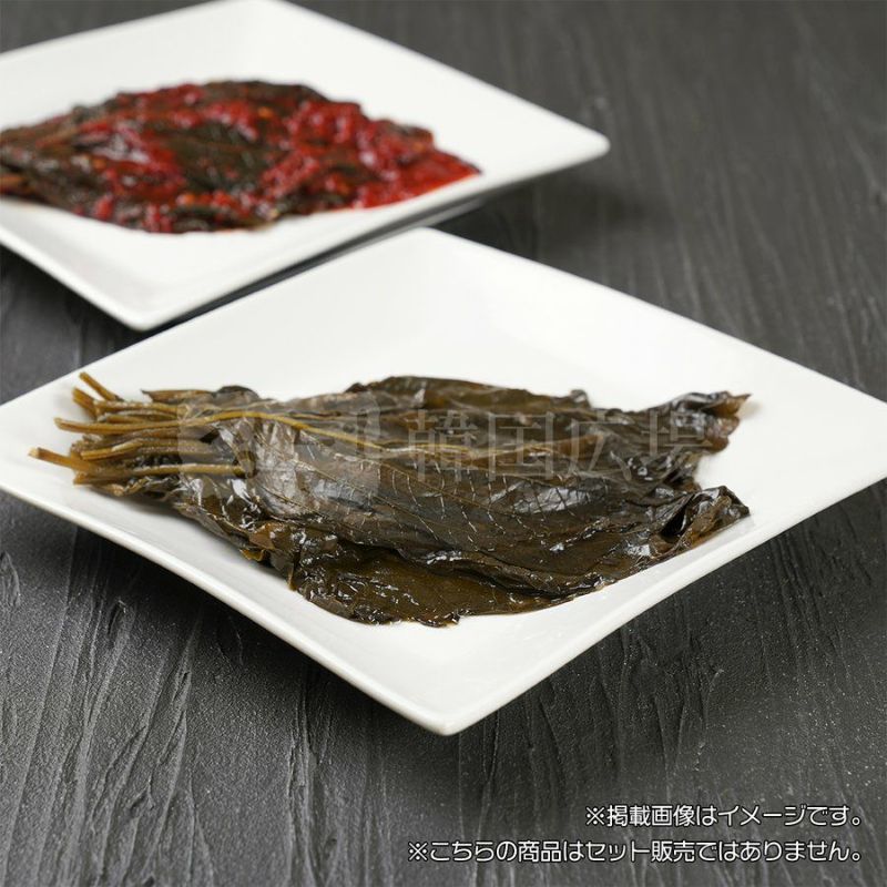 [原材料名] えごまの葉、醤油、水飴、砂糖、いわしエキス / 酸味料、調味料(アミノ酸等)、(一部に大豆、小麦を含む)