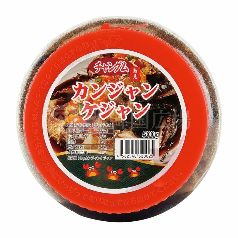 [原材料名] 渡り蟹(韓国産)、青唐辛子、玉葱、生姜、ニンニク、椎茸、長葱、煮醤油(遺伝子組み換えでない)、味醂、料理酒、ほんだし、レモン汁、甘草、ファンギ(キバナオギの葉)、当帰、調味料等、(アミノ酸等)