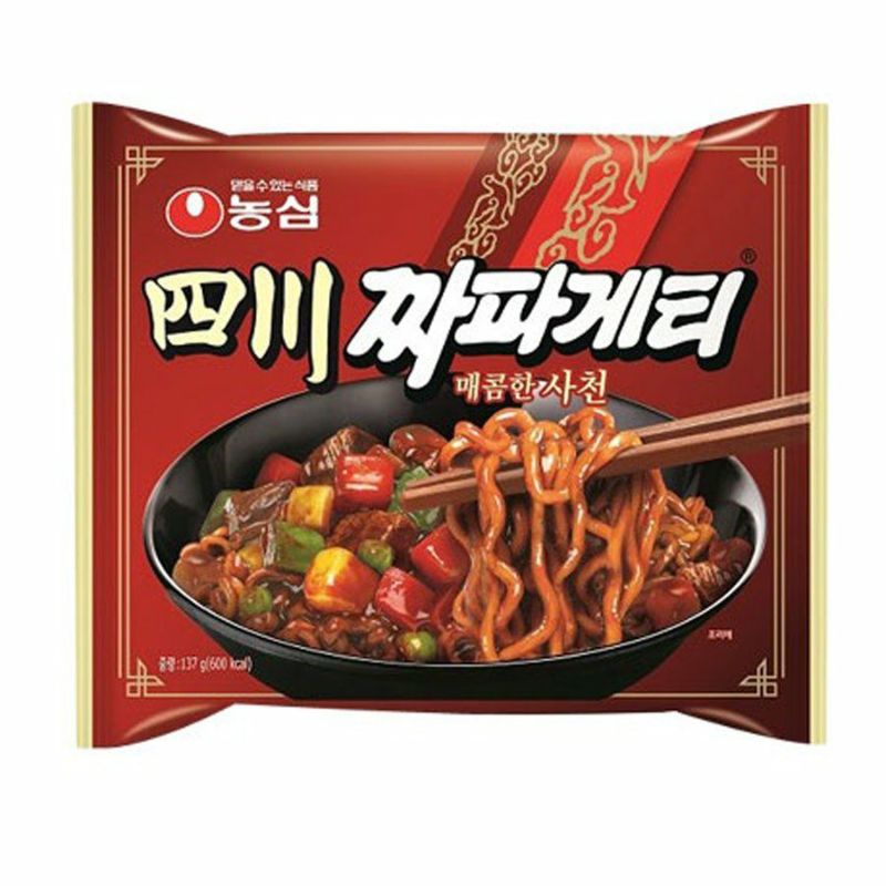 [名称] 即席中華麺 [原材料名] 油揚げ麺(小麦粉、植物油脂、でんぷん、食塩、米糠風味液)、スープ(四川チャジャンシーズニング、チャジャン粉末、砂糖、カラメル色素、煎り玉ねぎ粉、牛肉ヤンニョム風味油、大豆蛋白、ネギ風味油、野菜風味油、乾キャベツ、ポテトフレーク、煎り玉ねぎ、乾ニンジン)、(一部に小麦・卵・牛乳・えび・大豆・豚肉・牛肉を含む) [内容量] 137g [賞味期限] 別途記載 [保存方法] 直射日光及び高温多湿を避けて保管してください [原産国名] 韓国 [輸入者] アシステッドトレード(株)大阪府堺市堺区材木町3-1-33 [栄養成分表示[1食137g当たり]] エネルギー 600kcal / たんぱく質 11g / 脂質 21g / 炭水化物 92g / 食塩相当量 2.74g
