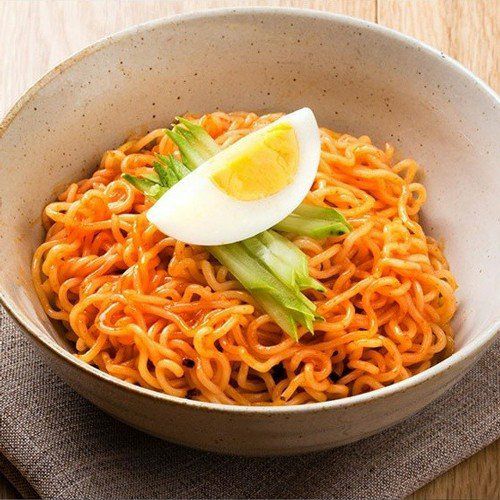 [原材料名] 油揚げ麺(小麦粉、パーム油、澱粉、食塩、乳化剤)、砂糖、唐辛子粉、食塩、リンゴ果汁、にんにく、大豆油、調味料(アミノ酸等)、からし、玉ねぎ、醤油、ごま油、胡椒、(原材料の一部に小麦、乳化分、大豆を含む)