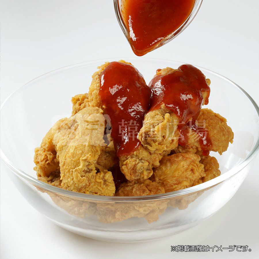 美味しい本場韓国のヤンニョムけチキンが出来上がります。(ソースの量はお好みで調整してください。)