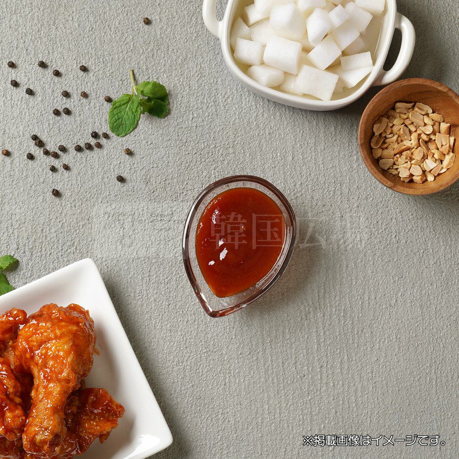 韓国の唐辛子の辛さとにんにくの旨みに甘酸っぱいトマトソースを加えたヤンニョムで
