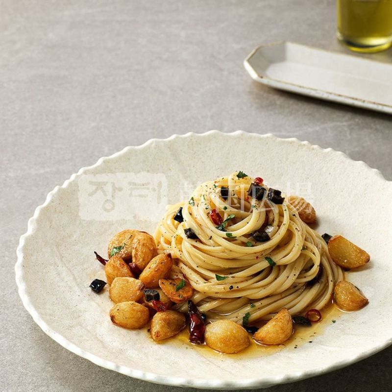 エキストラバージンオリーブオイルとガーリック、ペペロンチーノで作られたピリ辛のパスタソースです。