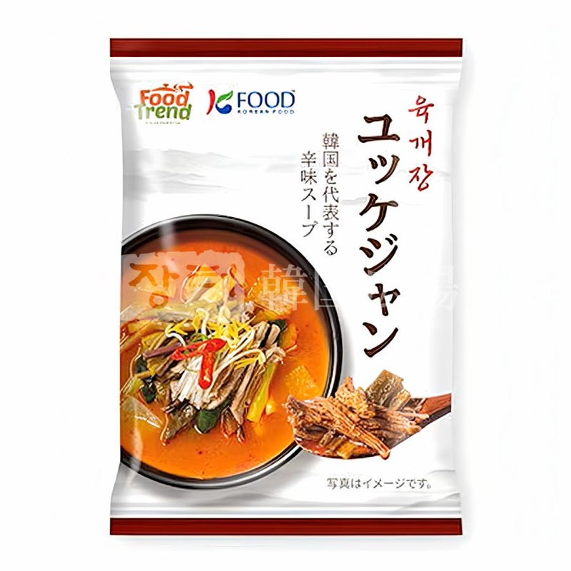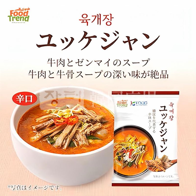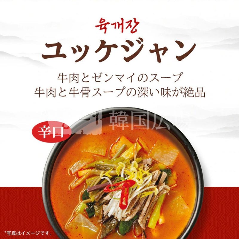 [原材料] 牛肉エキス、牛肉大根スープエキス、牛肉だし、牛骨エキス、唐辛子粉、でん粉、ラー油、しょうゆ、ユッケジャンソース、砂糖、にんにくエキス、緑茶風味液、マルトデキストリン加工品、みそ、コチュジャン、こしょう、うきみ・具(もやし、ゼンマイ、ねぎ)/調味料(アミノ酸等)、増粘多糖類、クエン酸、香料、着色料(パプリカ色素、カラメル)、グリセリン脂肪酸エステル、酒精、グリシン、甘味料(ステビア)、リン酸Ca、香辛料抽出物、保存料(ソルビン酸K)、(一部に小麦・乳成分・牛肉・大豆・鶏肉を含む)
