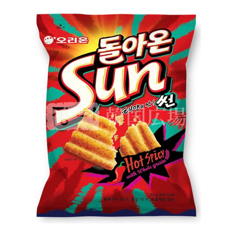 [原材料名] コーンミール、植物油脂、小麦粉、米粉、オーツ麦粉、砂糖、ホットスパイシーシーズニング/調味料(核酸等)、pH調整剤、甘味料(アスパルテーム・L-フェニルアラニン化合物)、微粒二酸化ケイ素、パプリカ色素、リンゴ酸、香料、(一部に小麦・乳成分・大豆・ごまを含む)