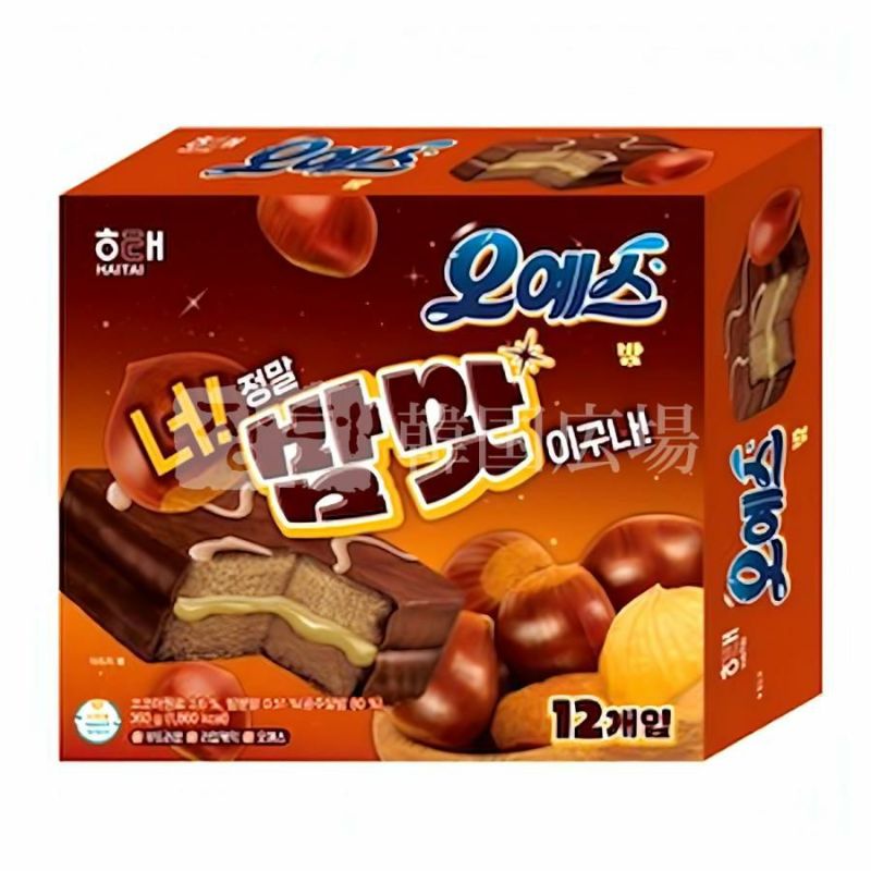 [原材料名] 準チョコレート、小麦粉、砂糖、全卵液、ショートニング、水飴、ブドウ糖、植物性クリーム、マーガリン、混合食用油、穀物加工品、栗粉、製剤水、ココアパウダー、でんぷん、精製塩、 / 甘味料(D-ソルビトール)、酒精、膨張剤(炭酸水素ナトリウム、乳酸カルシウム)、乳化剤(グリセリン、グリセリン脂肪酸エステル、レシチン)、pH調整剤(酢酸ナトリウム、氷酢酸)、増粘剤(グァーガム)、香料、着色料(カカオ色素、ベニバナ黄色素、紅麹色素、カロテン色素)、デキストリン、(一部に 乳成分・小麦・卵・大豆を含む)