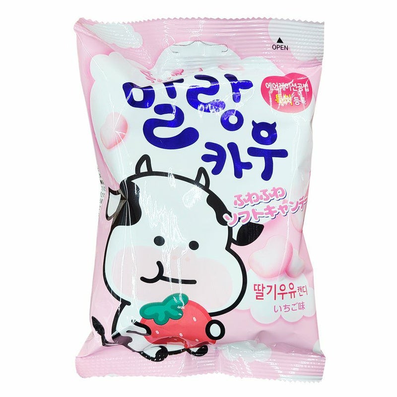 [原材料名] 水あめ、乳等を主原料とする食品、砂糖、植物油脂、クリーム、乳清、ゼラチン、大豆たんぱく、コーンスターチ、牛乳、いちごエキス/甘味料(D-ソルビトール)、増粘剤(プルラン、加工でんぷん、キサンタンガム)、乳化剤、香料、酸味料、着色料(クチナシ)、安定剤(CMC)、酸化防止剤(V.E)、酒精、(原材料の一部に乳成分・大豆・ゼラチンを含む)