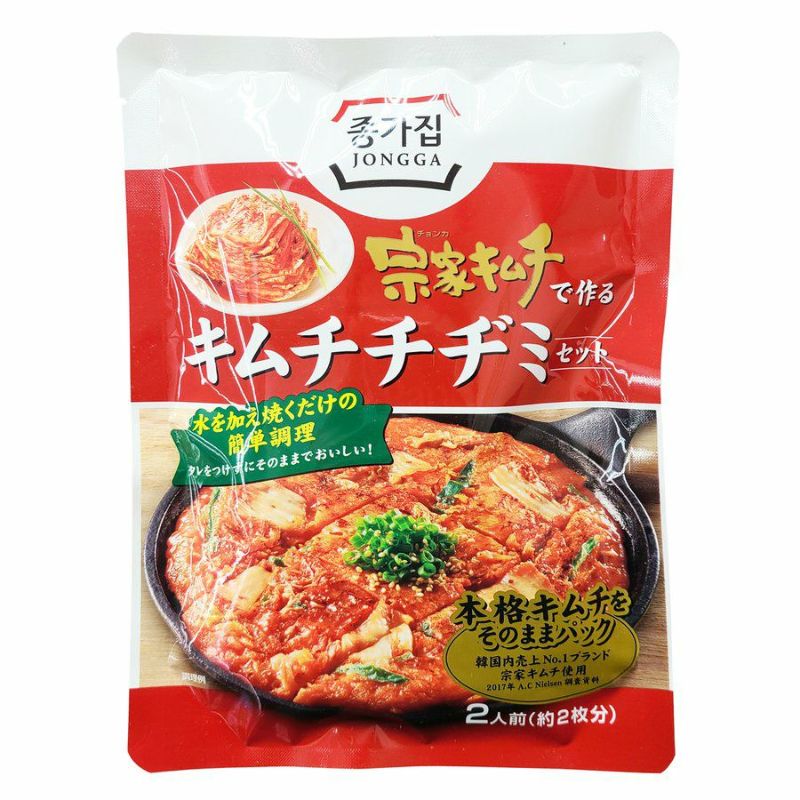 [原材料名]【チヂミ粉】小麦粉、コーンスターチ、食塩、砂糖、米粉、ガーリックパウダー、オニオンパウダー / 膨張剤、増粘剤(グァー)【キムチ】はくさい、漬け原材料(米粉、ぶどう糖果糖液糖、赤とうがらし粉、にんにく、えびエキス、長ねぎ、にら、いわしエキス、かつおだし、砂糖、醸造酢、しょうが)/ 調味料(アミノ酸)、酸味料