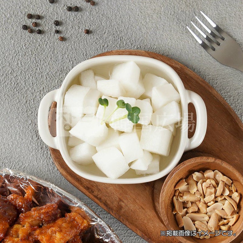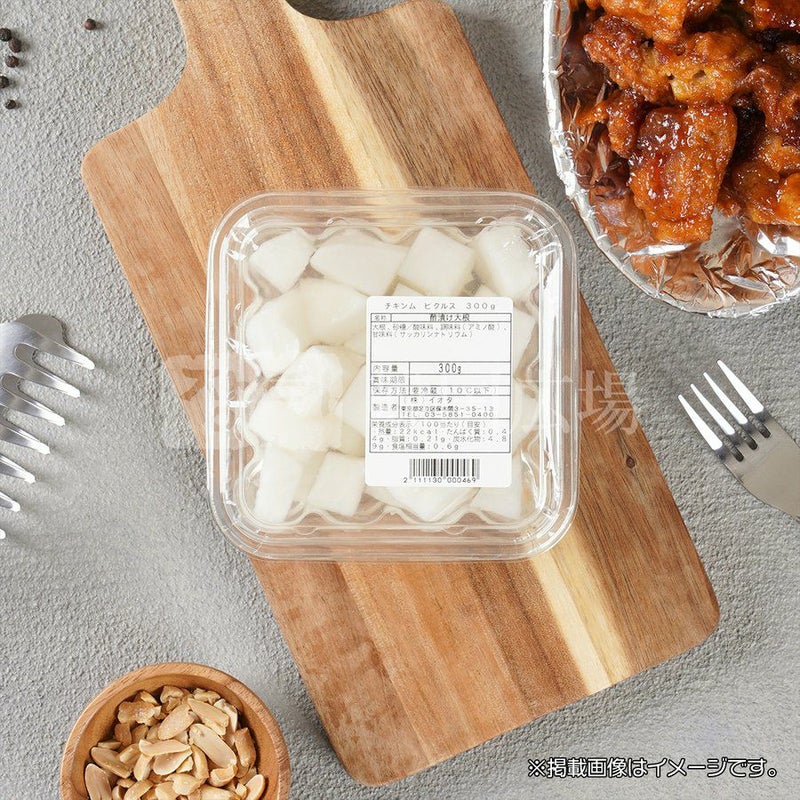 [名称] 酢漬け大根 [原材料名] 大根、砂糖/酸味料、調味料(アミノ酸)、甘味料(サッカリンナトリウム) [内容量] 300g [賞味期限] 製造日より約10日 [保存方法] 要冷蔵(10℃以下) [製造者] 株式会社 イオタ 東京都足立区保木間3-35-13 [栄養成分表示]100g当たり 熱量 22kcal / たんぱく質 0.44g / 脂質 0.21g / 炭水化物 4.89g / 食塩相当量 0.6g
