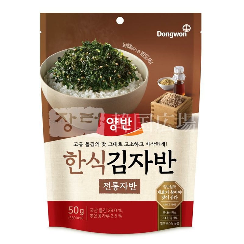 [原材料名] 菜種油、岩のり(韓国産)、ごま油、こめ油、炒りごま、炒りきな粉、食塩/酸化防止剤(コメヌカ油抽出物、ローズマリー抽出物、緑茶抽出物)、(一部に大豆・ごまを含む)
