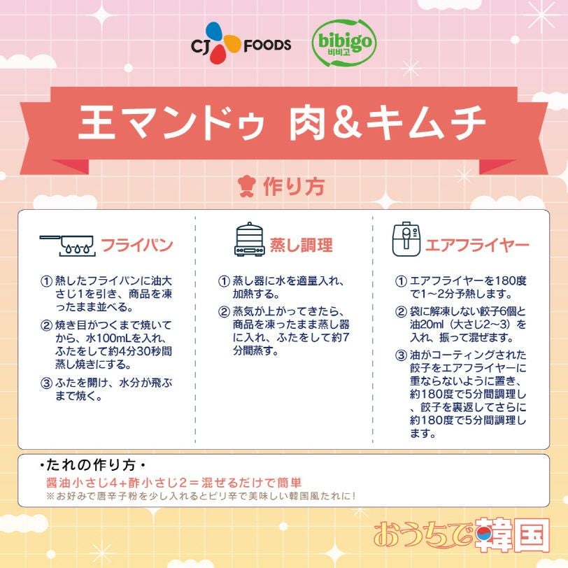 他の画像を見る bibigo 冷凍 bibigo 王餃子 (肉&キムチ) 1kg 冷凍 NEW クール便でお届け 定価 ¥ 1,500 のところ 販売価格 ¥ 1,425 税込 カートに入れる お気に入りに登録する