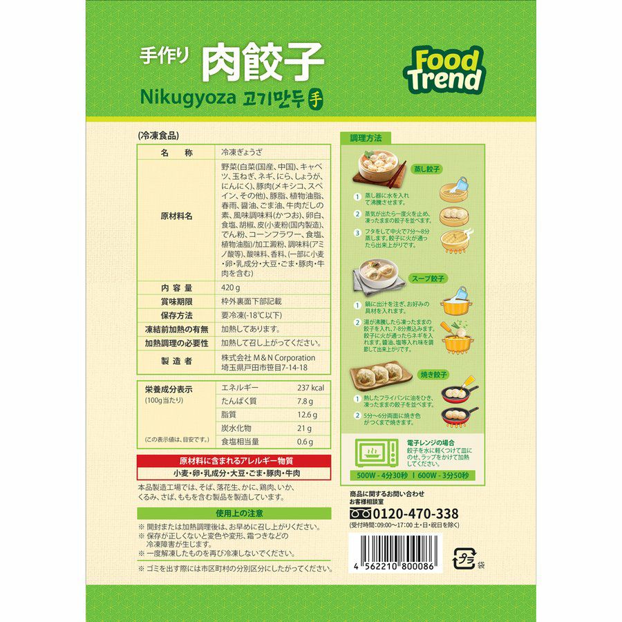 冷凍 名家 手作り肉餃子 420g